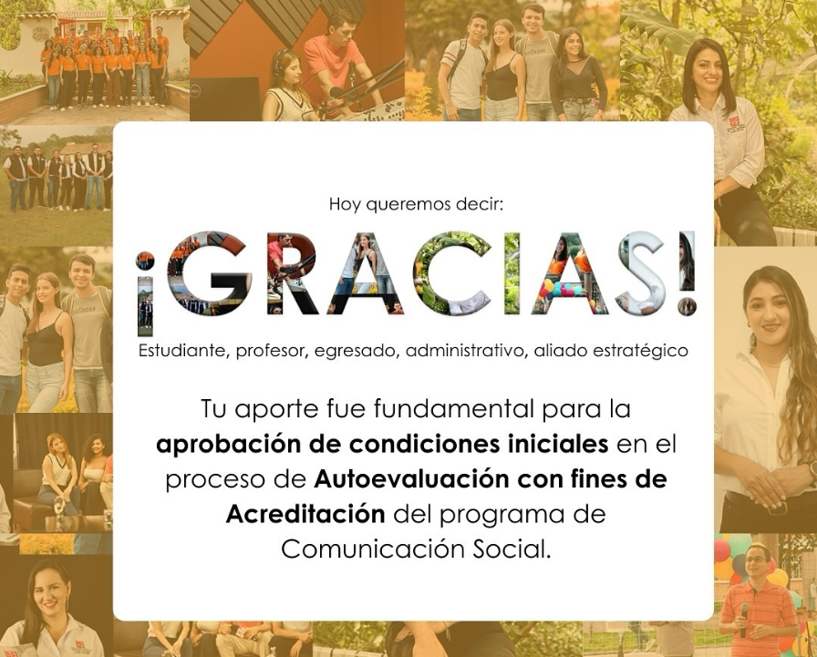 Nos complace compartir con ustedes una noticia que llena de orgullo a toda nuestra comunidad: el Programa de Comunicación Social ha recibido la aprobación de condiciones iniciales para la Acreditación de Alta Calidad. Este es un logro significativo que marca el inicio de un camino lleno de desafíos y oportunidades, y refleja el arduo trabajo, dedicación y compromiso de nuestro equipo docente, administrativo y estudiantil.